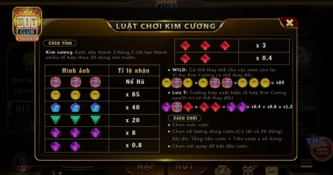 Không chỉ đơn giản là trò chơi may rủi, nổ hũ kim cương yêu cầu người chơi phải biết tính toán và lên chiến lược hợp lý. Với những tính năng đặc biệt và Jackpot hấp dẫn, đây chính là lựa chọn tuyệt vời cho những ai yêu thích trò chơi cá cược kịch tính.